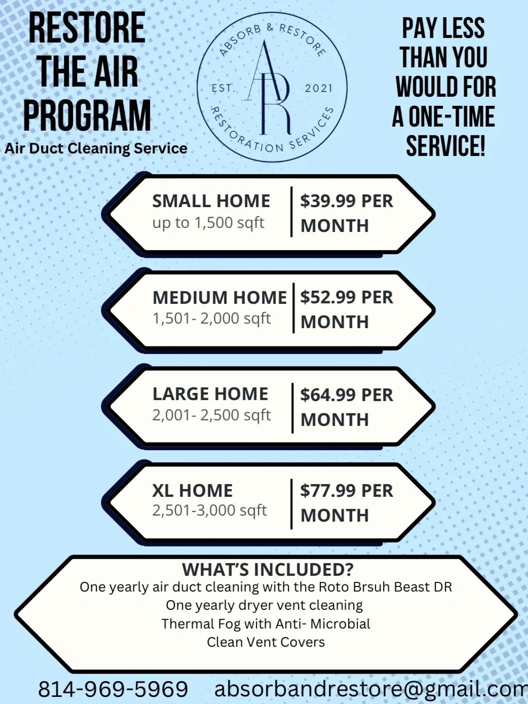 Want to have clean air all year round and know your dryer vent is not clogged with lint that could cause a fire? Sign on to our subscription service today and save!